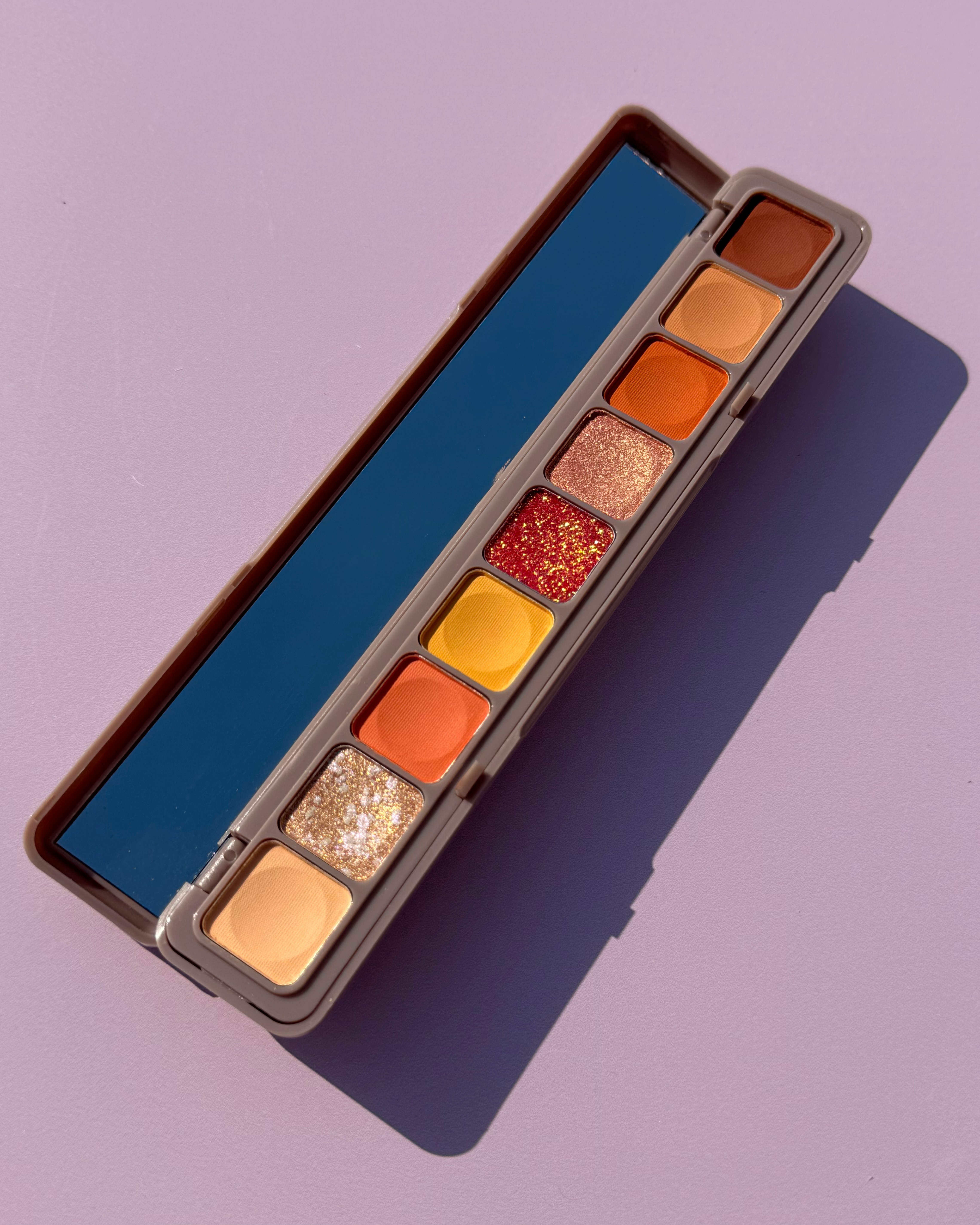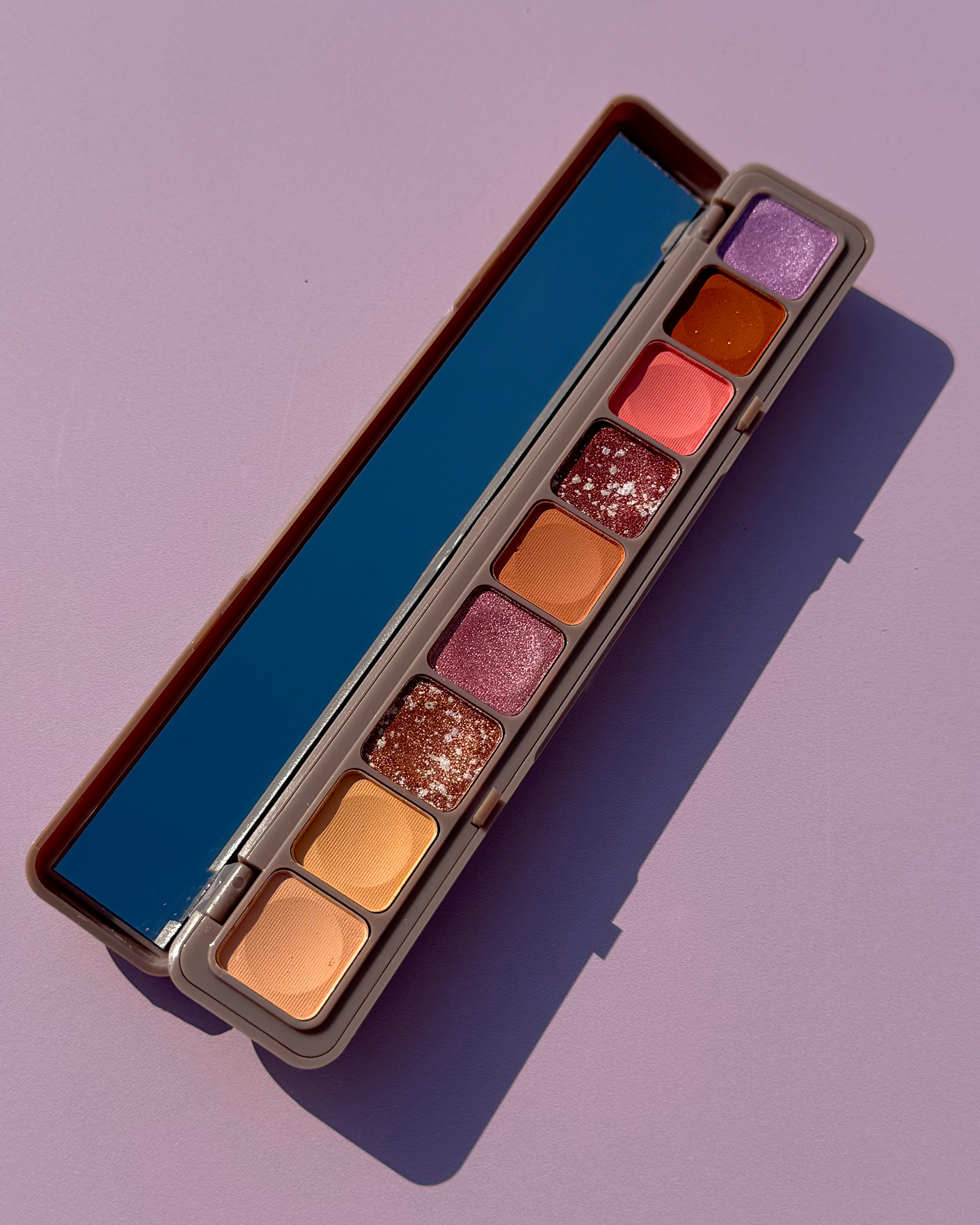 پلت سایه انگشتی هدی موجی دارای نه رنگ بشدت زیبا با رنگ های مات و شاین دار است.این پلت سایه پیگمنت و ماندگاری بالایی دارد . پکیجینگ شیک و جمع جور این سایه اون رو بسیار خاص و محبوب کرده. موجود در دو کد رنگی.کد یک شامل رنگ های گرم ، نود و آجری .کد دو بیشتر رنگ های صورتی و ملیح.